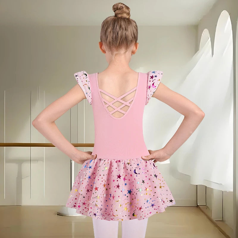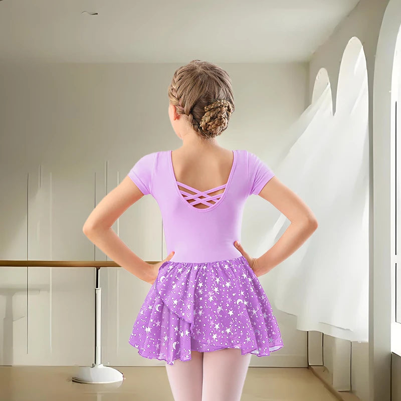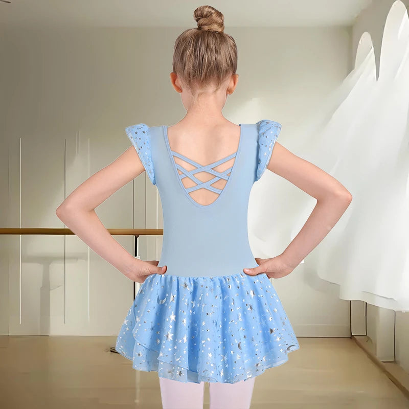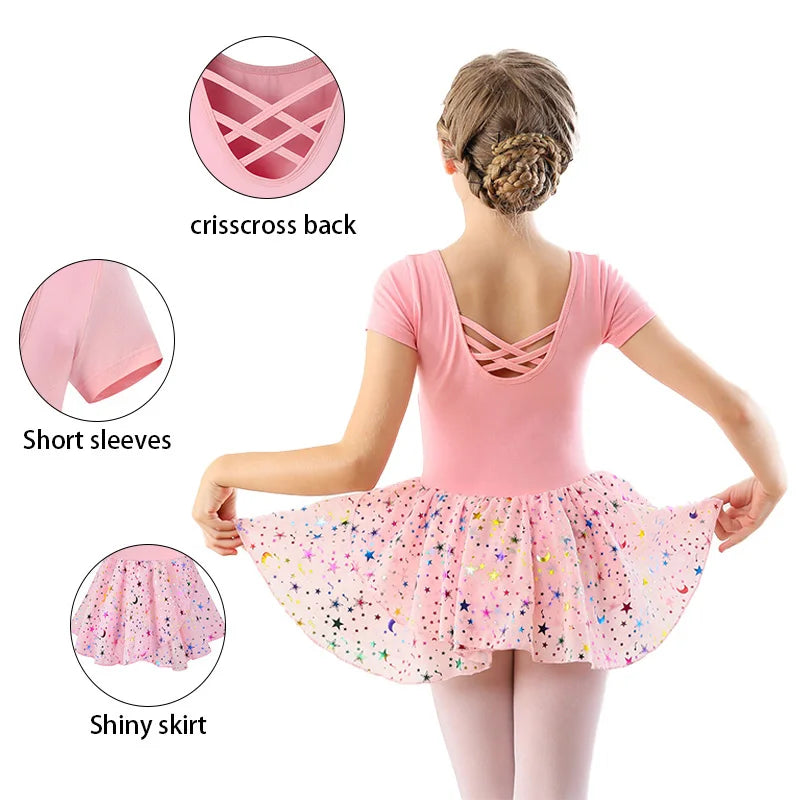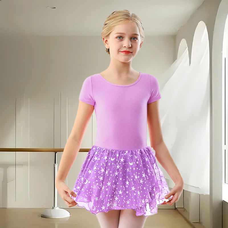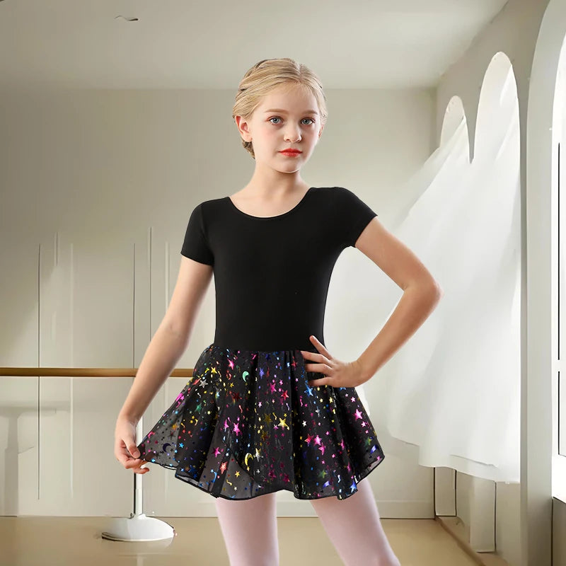 Justaucorps jupette brillante Bryanna manches & coloris au choix
