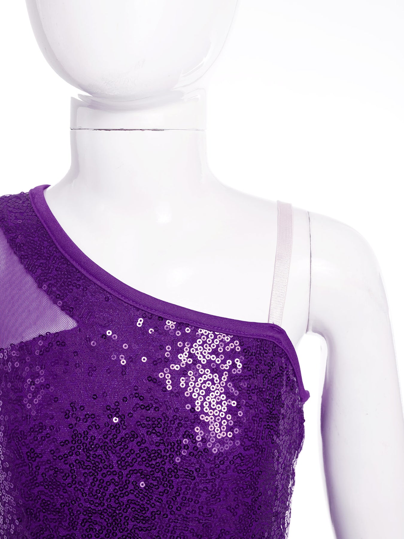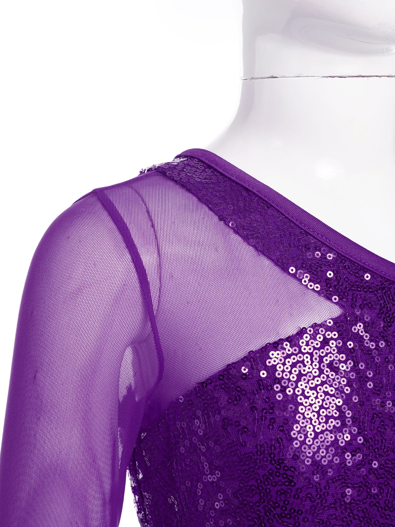 • Top avec paillettes, 1 manche longue et une bretelle double