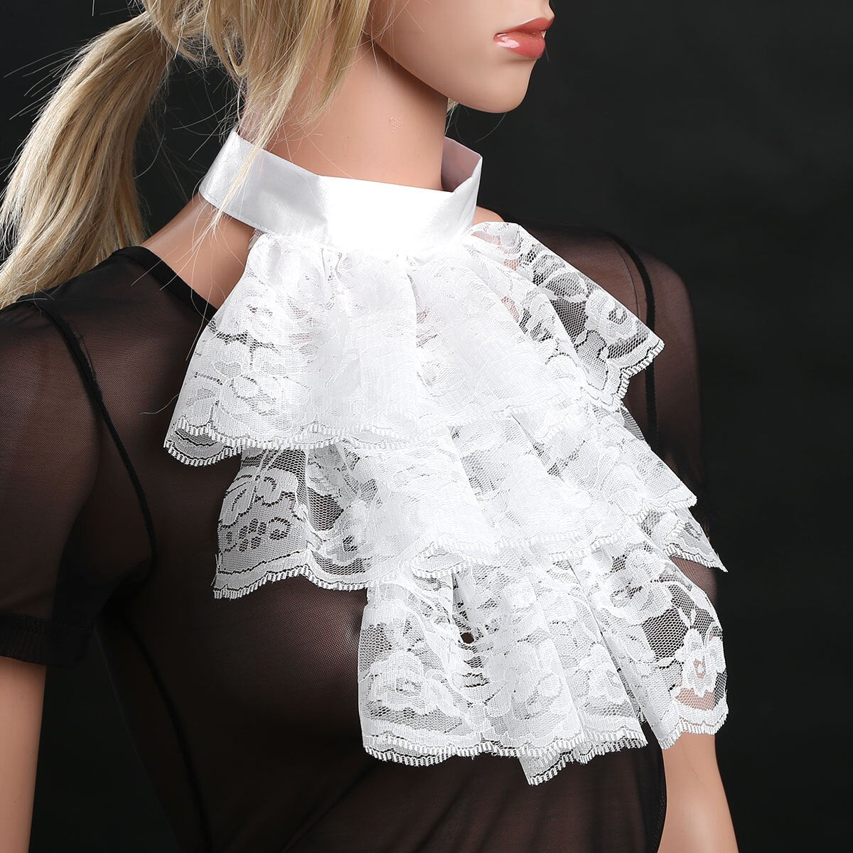 White: Jabot: longueur. 27cm/10.6", tour de cou 38cm/14.9"inches