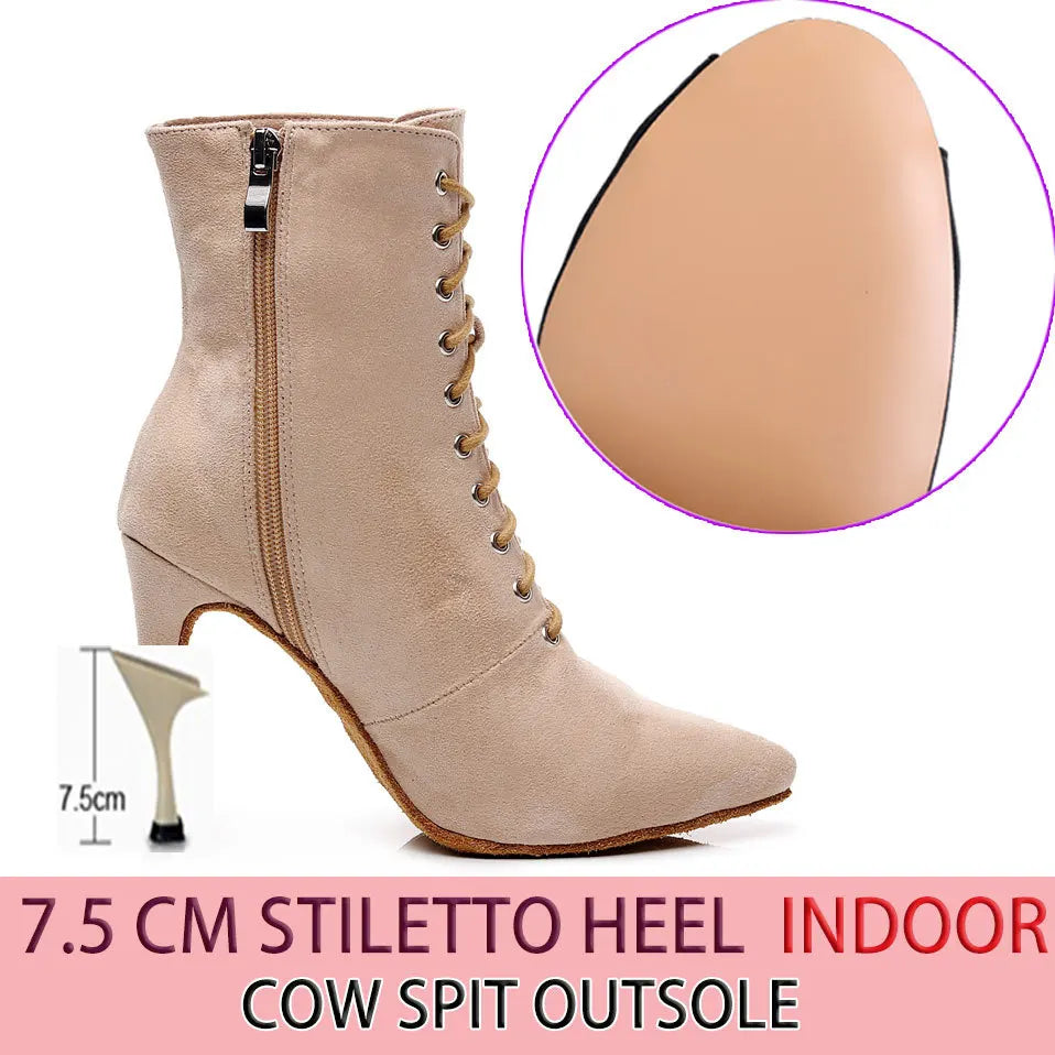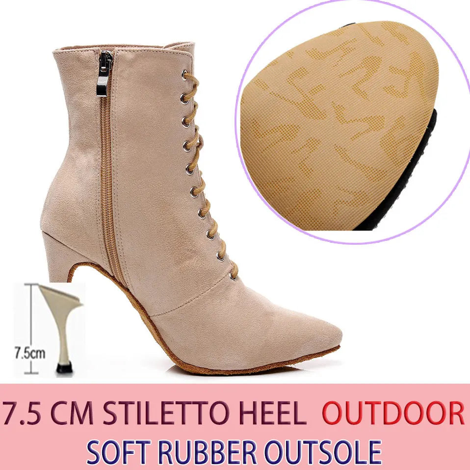 BOTTINES FERMÉES DANSE SHAYANE BEIGE semelle extérieur TALONS DE 7.5 À 11CM