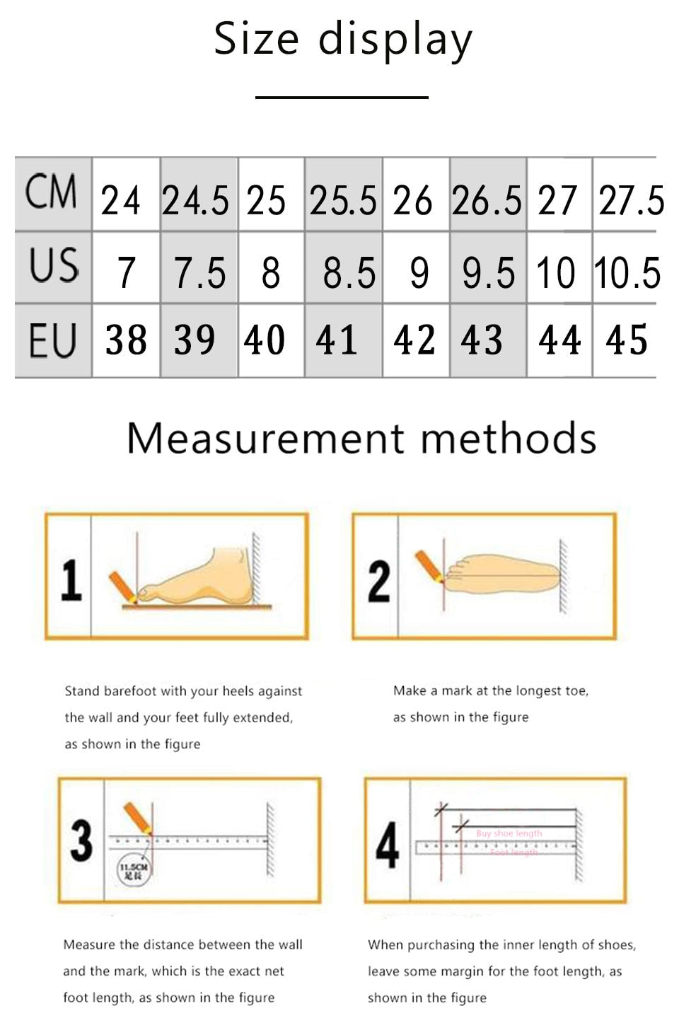 Merci de prendre la mesure de votre pied, du talon à orteils pour avoir la taille correspondante.