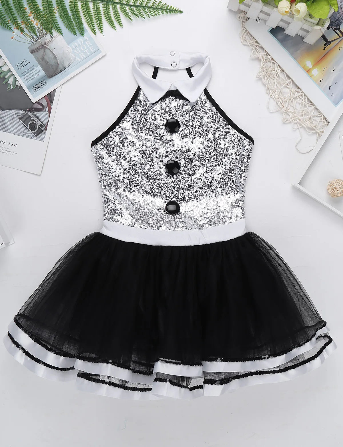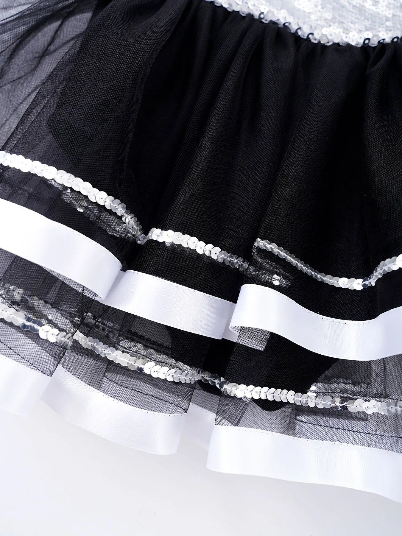 • Corsage pailleté brillant avec boutons décoratifs noirs à l'avant
