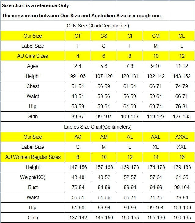 Size: taille / Heigth: hauteur / Bust: buste / Waist: taille / Chest: poitrine / Hip: hanche