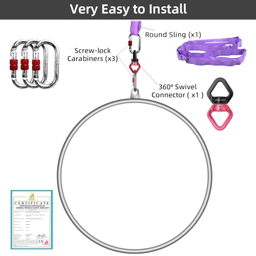• Très facile à assembler : il ne faut que quelques minutes pour l'installer ou le ranger. Tous les équipements de cerceaux aériens que nous proposons sont livrés en ensemble complet et peuvent être emportés à la salle de sport, au studio ou tout lieu de spectacle.