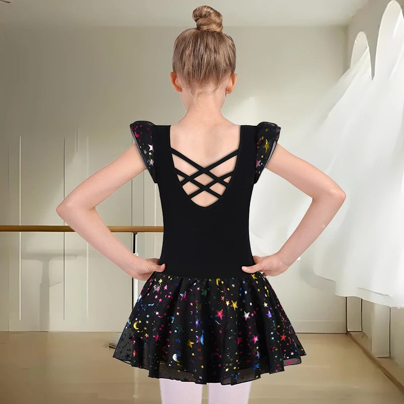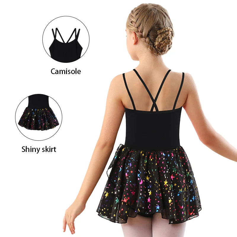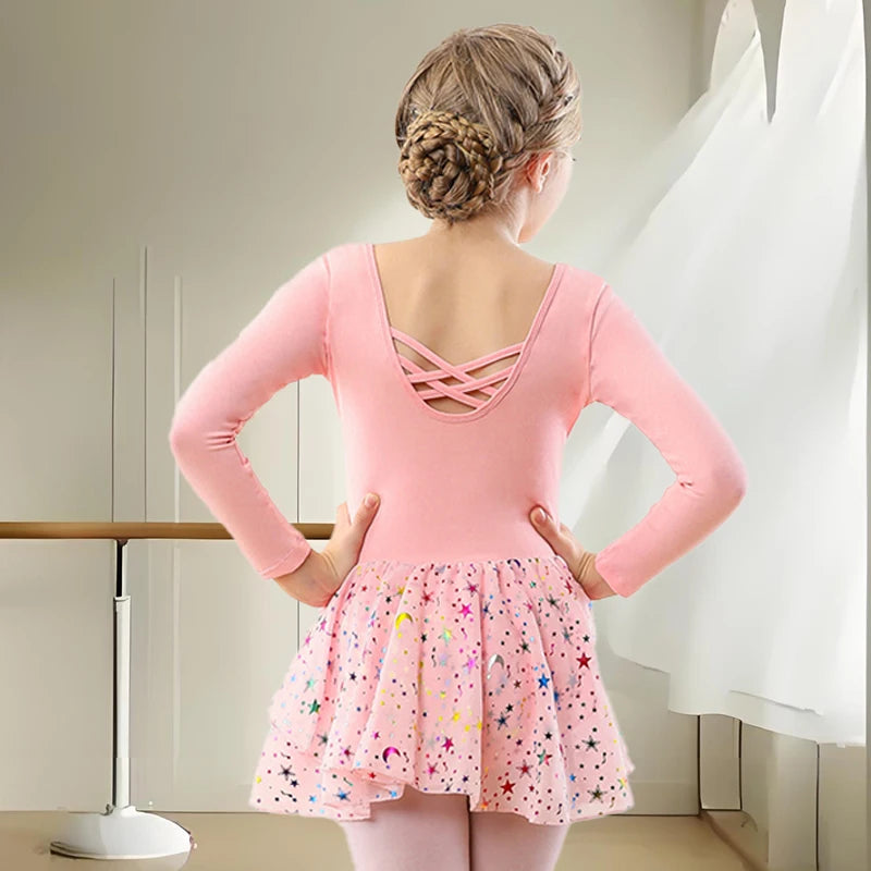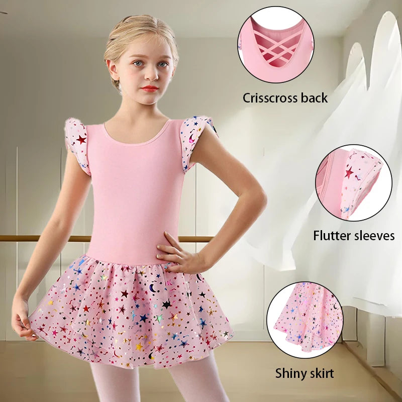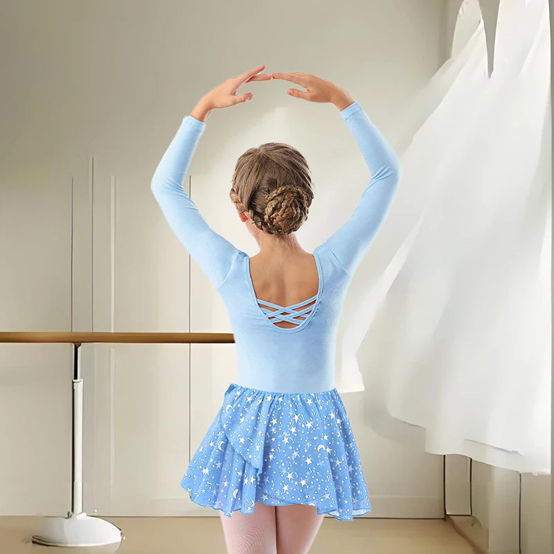 Justaucorps jupette brillante Bryanna manches & coloris au choix