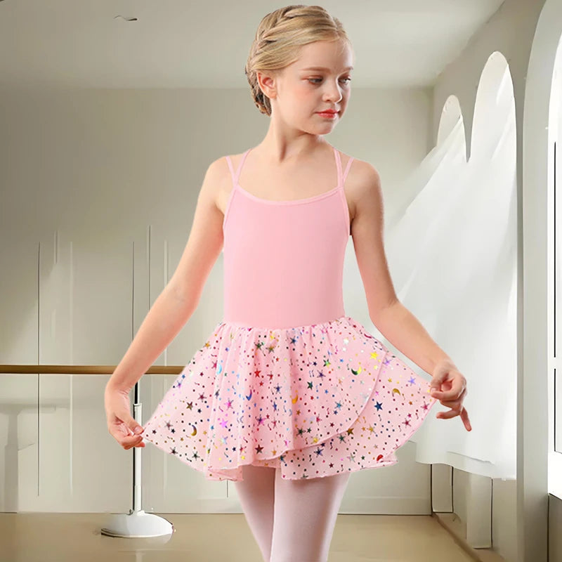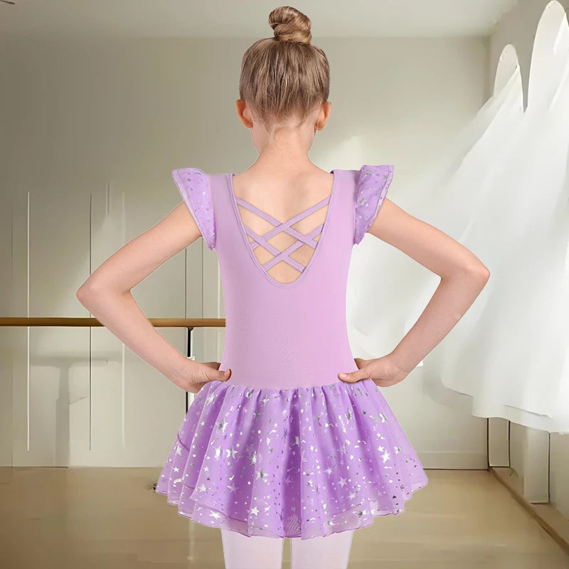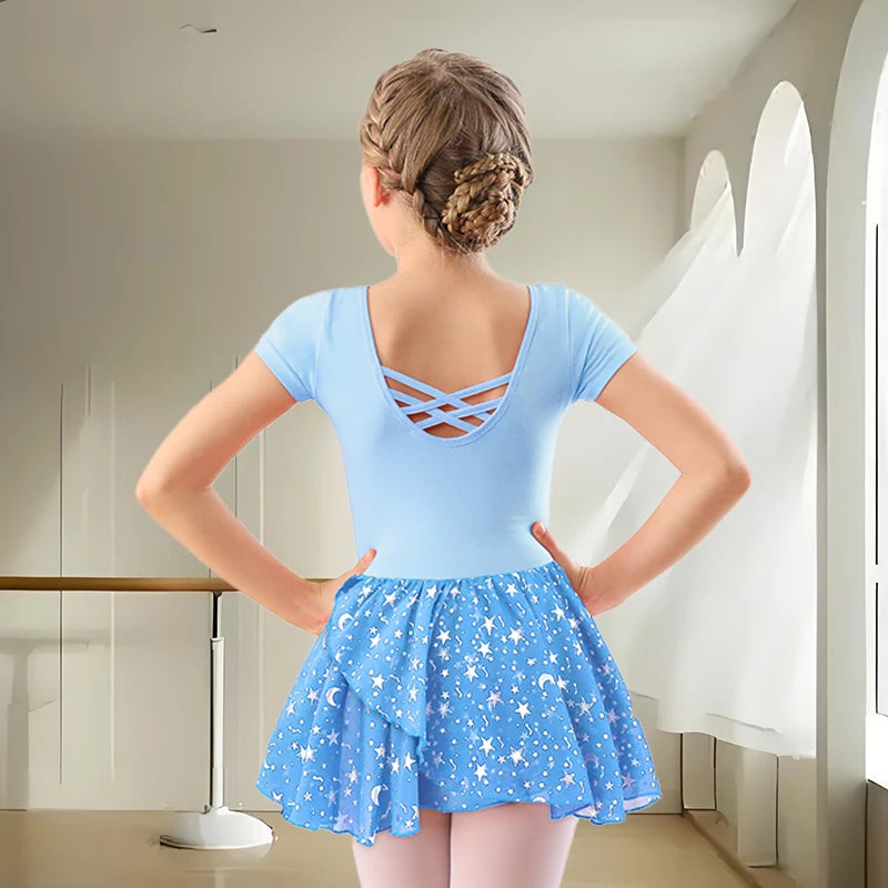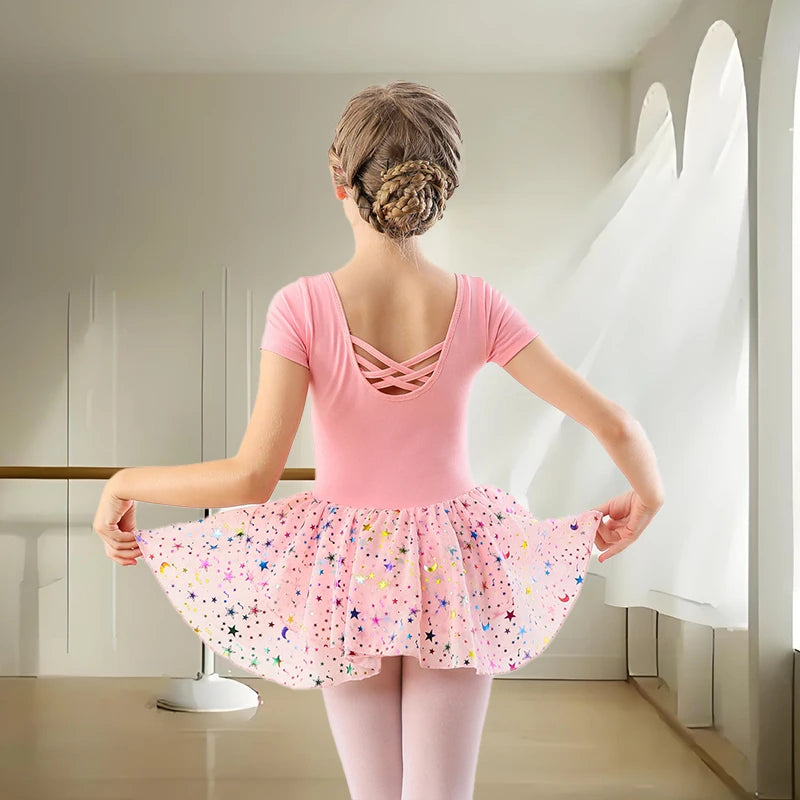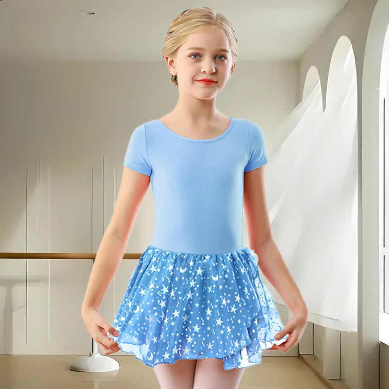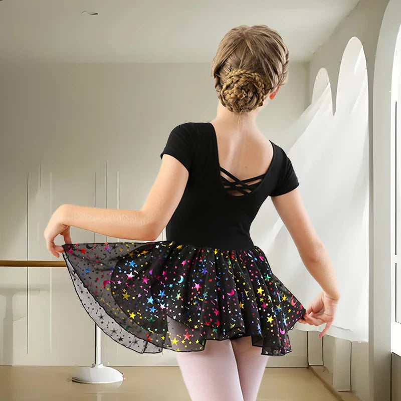 Justaucorps jupette brillante Bryanna manches & coloris au choix