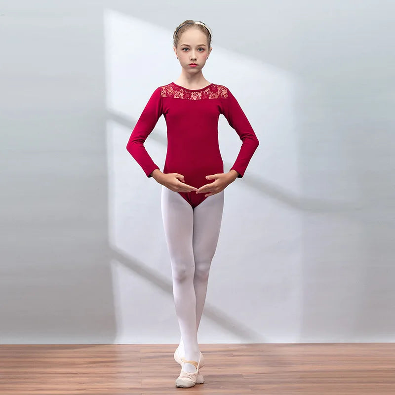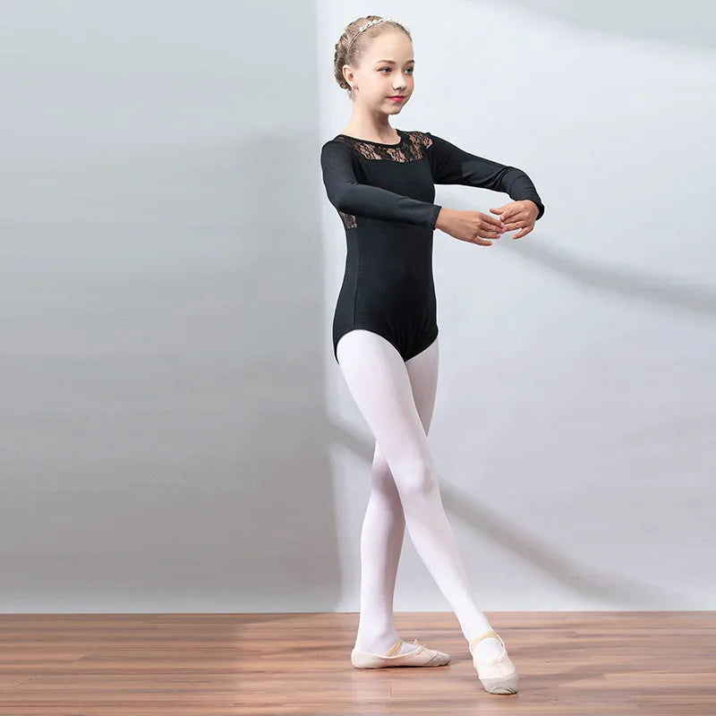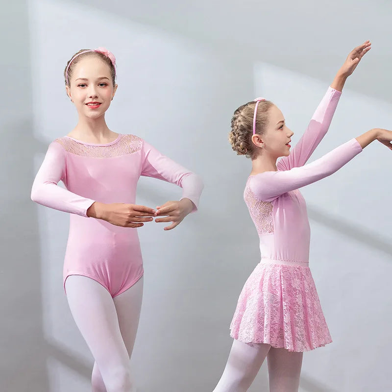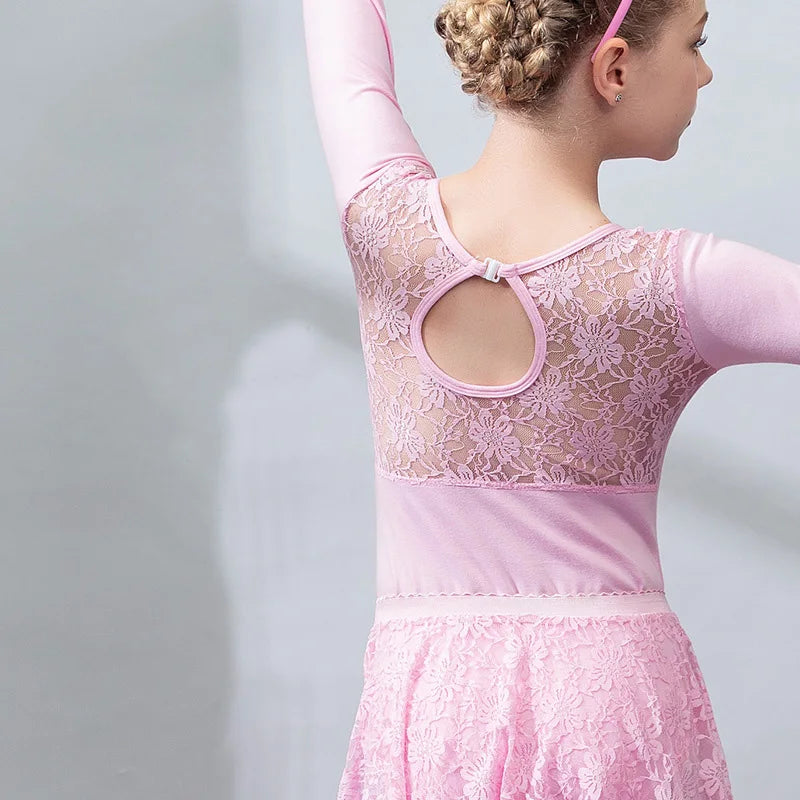 Justaucorps manches longues & dos dentelle Elena avec jupette