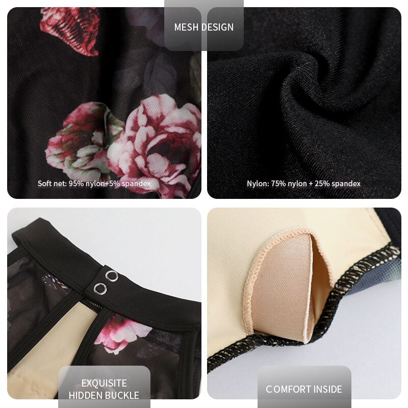 Justaucorps sans manches maille transparente florale ou unie Karla