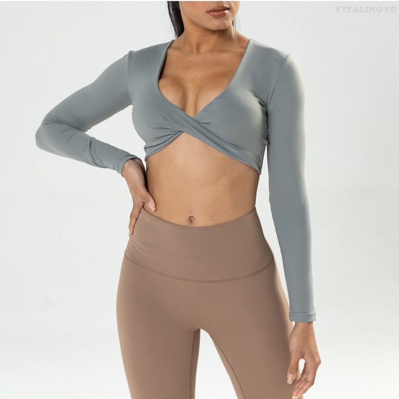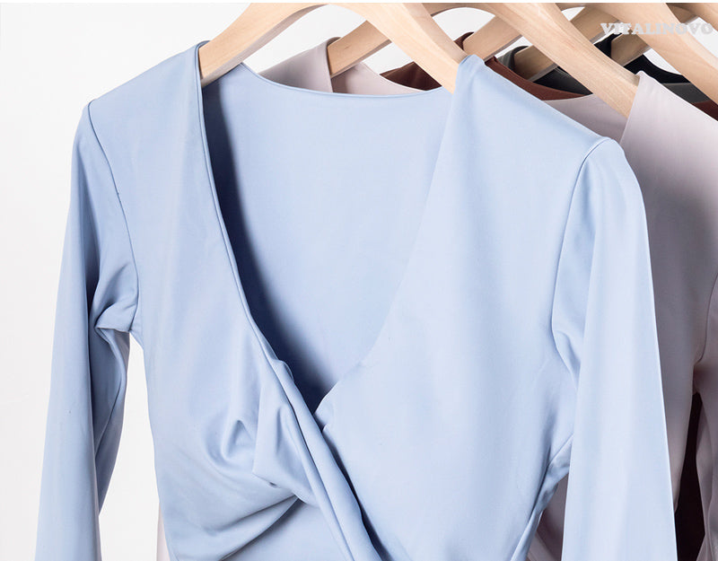 Top court grand décolleté manches longues