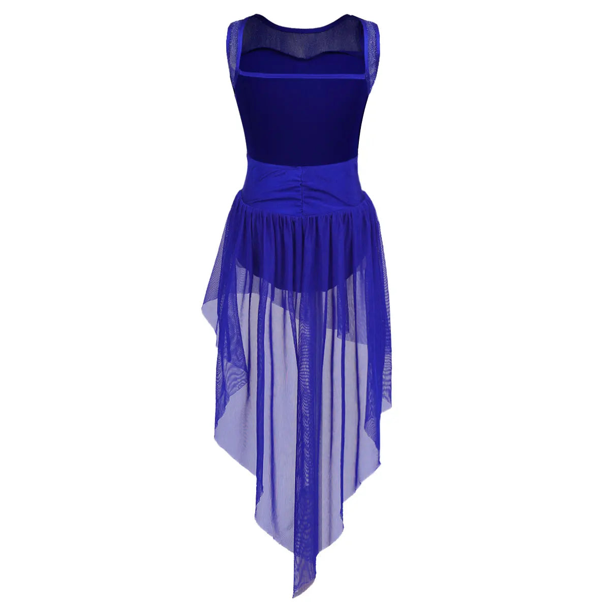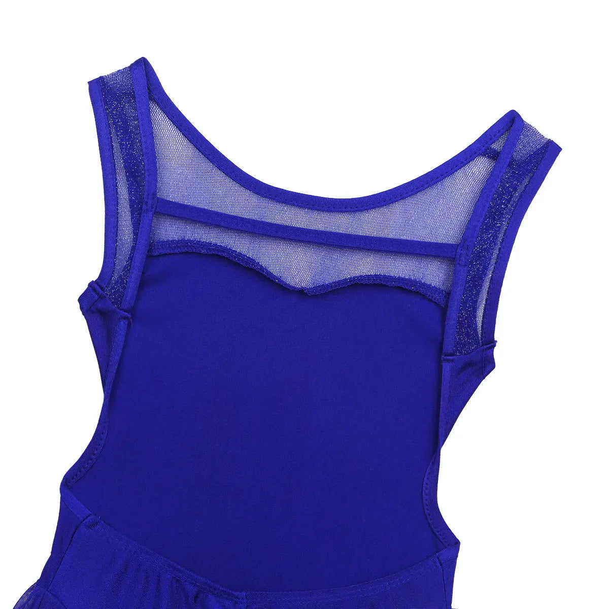Robe justaucorps asymétrique filles sans manches Anna bleu
