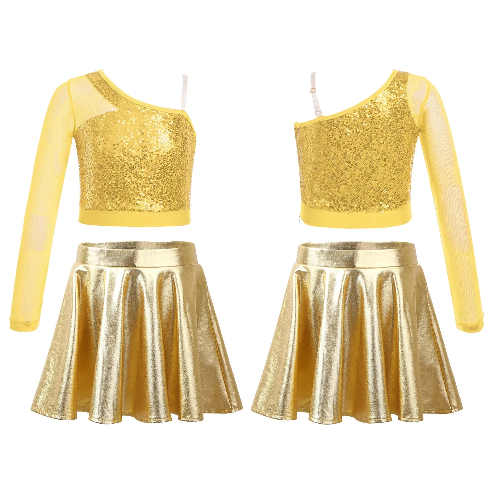 Ensemble Top paillettes 1 manche et Jupe metallique Anae